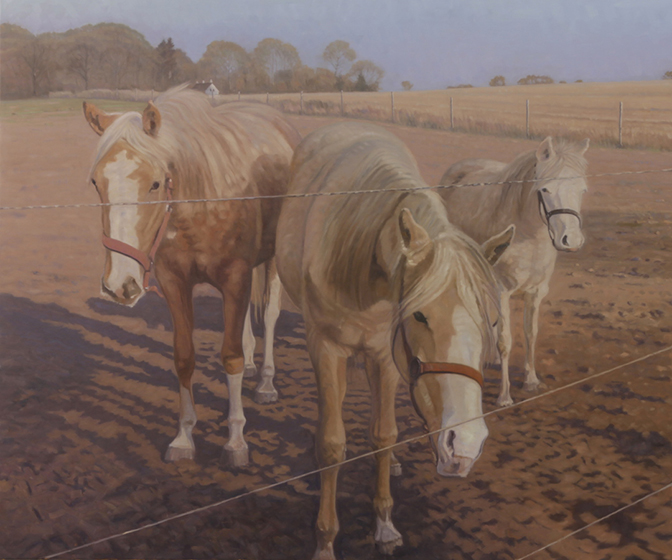 Tre Heste, 2026. 150x170cm. Olie på lærred. March 25, 2026 672 × 560 Fortrolige gensyn Ulrik Møller – Tre heste. PR-foto