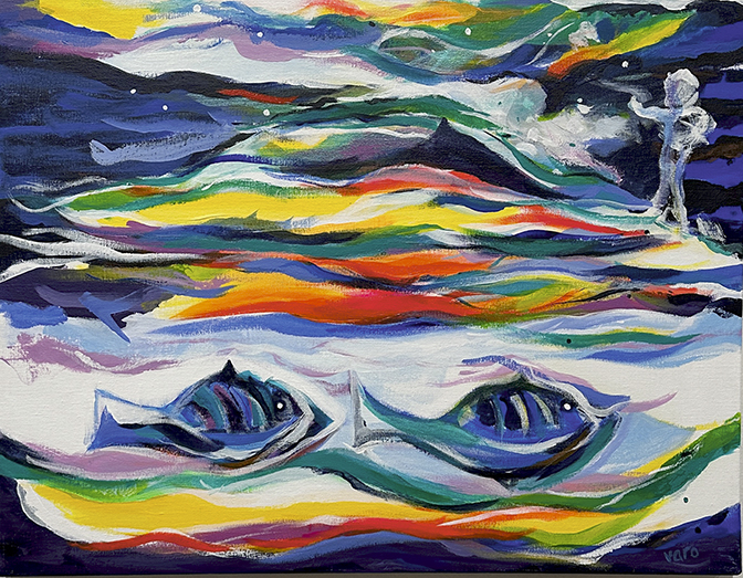 På malerisiden markeres koloritten tydeligst af Lise Tuxen, der med 4 store acrylstudier udtrykker en iboende og overbevisende trang til det koloristiske element. Titlerne henviser til naturens verden, men udtrykkene i værkerne forekommer abstrakte. Ser man nøjere efter finder man nok genkendelige dele af den synlige virkelighed, men det er som om, motivet følger i hælene på penslen, hver gang farven har taget sin trang til opmærksomhed. Flotte billeder er det. Også Alvaro Abreu hylder det koloristiske udtryk. Her i 3 værker, der viser vovemod, og som tør udfordre med sin palet. Der er en vibrerende lystighed over hans scenarier, og man fornemmer naturens kræfter i et både muntert og storladent patos. Jesper Kristiansens farver tirrer og udfordrer øjet, da de er lagt på i kontrasterende flader: en kromgrøn ved siden af en klar turkis, eller en bordeauxrød overfor en rosa. Mættede og umættede flader i samme rum. Nogle dækfarver lukker fladen og skaber tyngde, andre åbner motivet med deres transparens, og giver en lethed i motivet. Under farverne gemmer fotografiet sig med et styrende afsæt for billedet. Fotografierne forekommer som tilfældigt valgte snapshot fra dagligdagen, men bibragt et nyt liv gennem den subjektive farveiklædning.