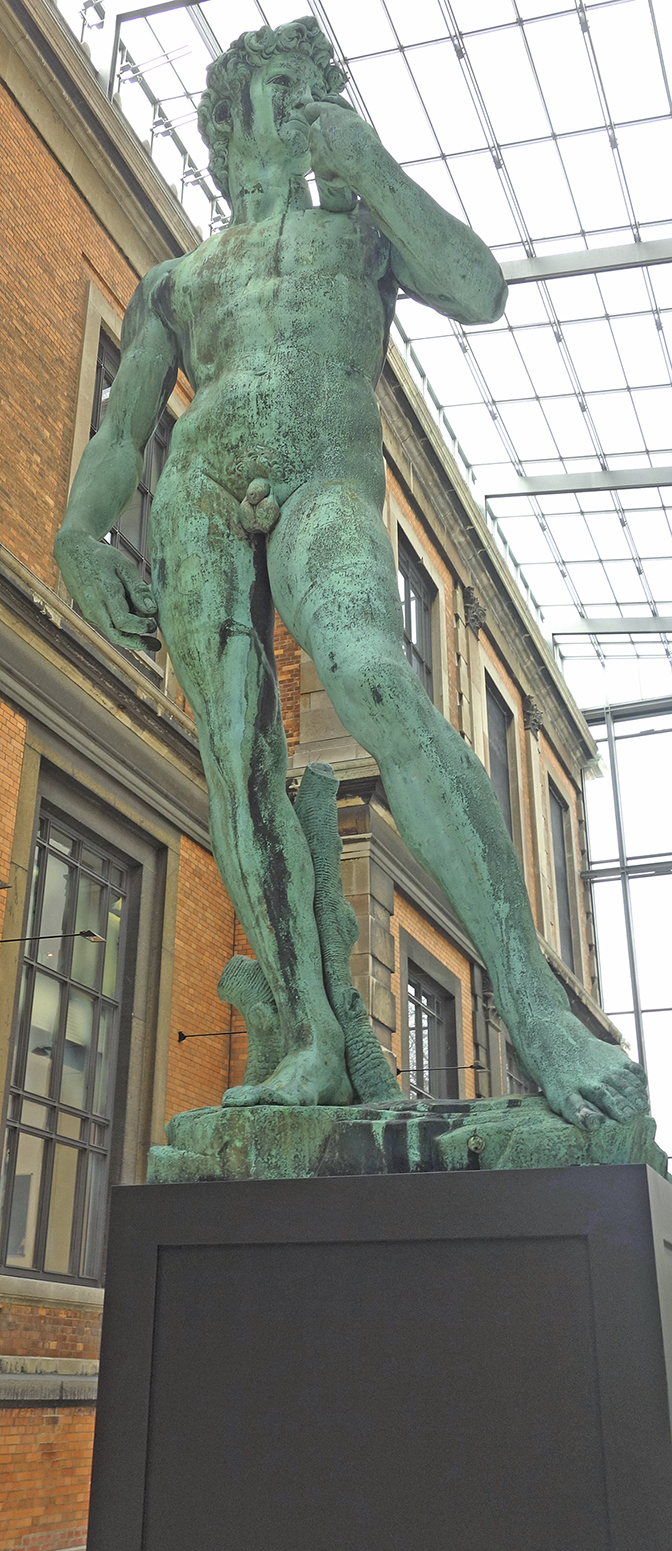Statens Museum for Kunsts store Michelangeloudstilling rummer naturligvis andre af hans værker i afstøbninger, 26 i alt. Davidskulpturen er i bronze og står i mellemgangen mellem det gamle museum og den nye tilbygning. Placeringen mellem Antikken og moderniteten i form af Højrenæssancen er velvalgt.