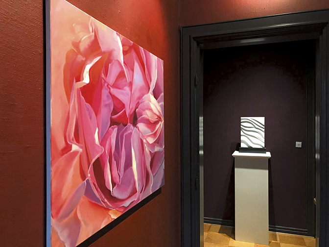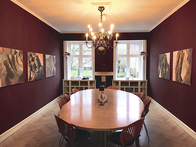 Derpå fandt Külli Suitso fornyet livsgnist i serien Secret Garden, der også er repræsenteret på udstillingen. Og her deler hun et særligt fællesskab med Lisbeth Krag Olsens inspirationskilder og formsprog. Begge har de kaldt frøkapslernes former frem i henholdsvis olie på lærred og i marmor.
