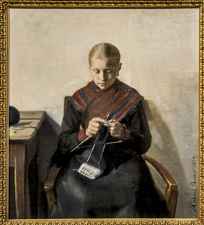 102225251022 Nål og tråd 25 November 19, 2025 672 × 740 Nr. 10 / 2025 – November / December Michael Ancher (1849 – 1927) – Ung fiskerpige der strikker. 1887. Olie på lærred. 58,2 x 52,8 cm. Foto: Bent Jakobsen
